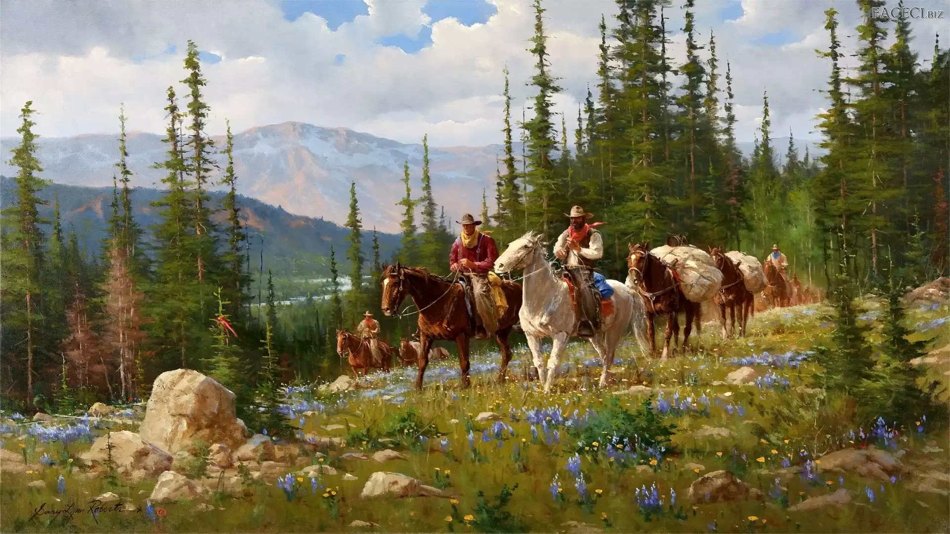 Konie, Góry, Mężczyzni, Las